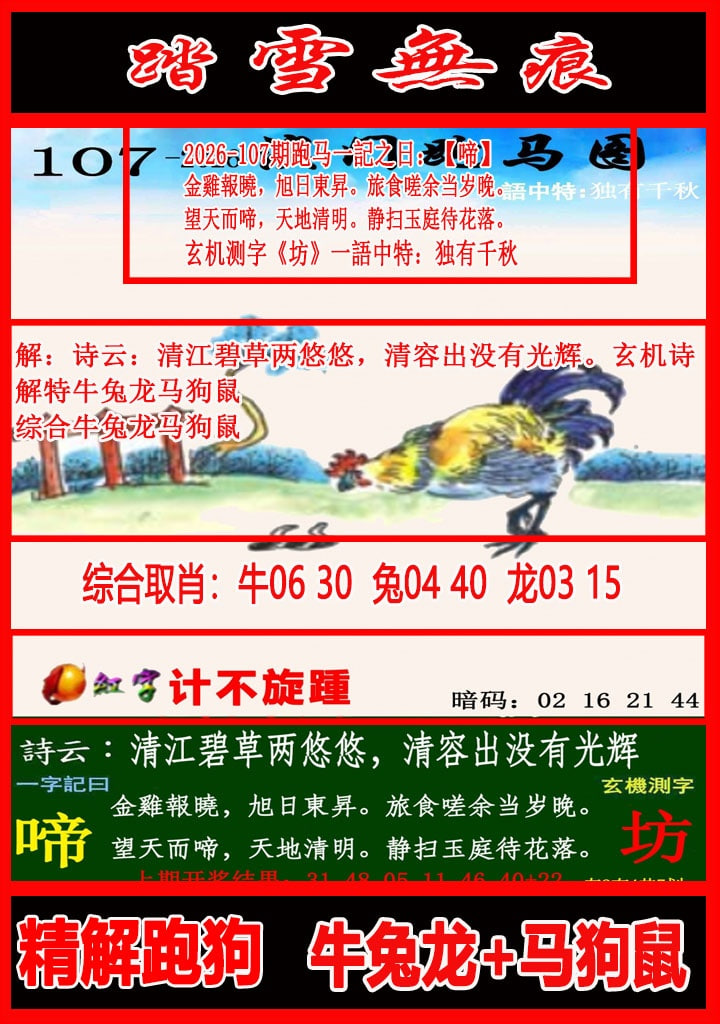106期跑马玄机测字开鸡22准